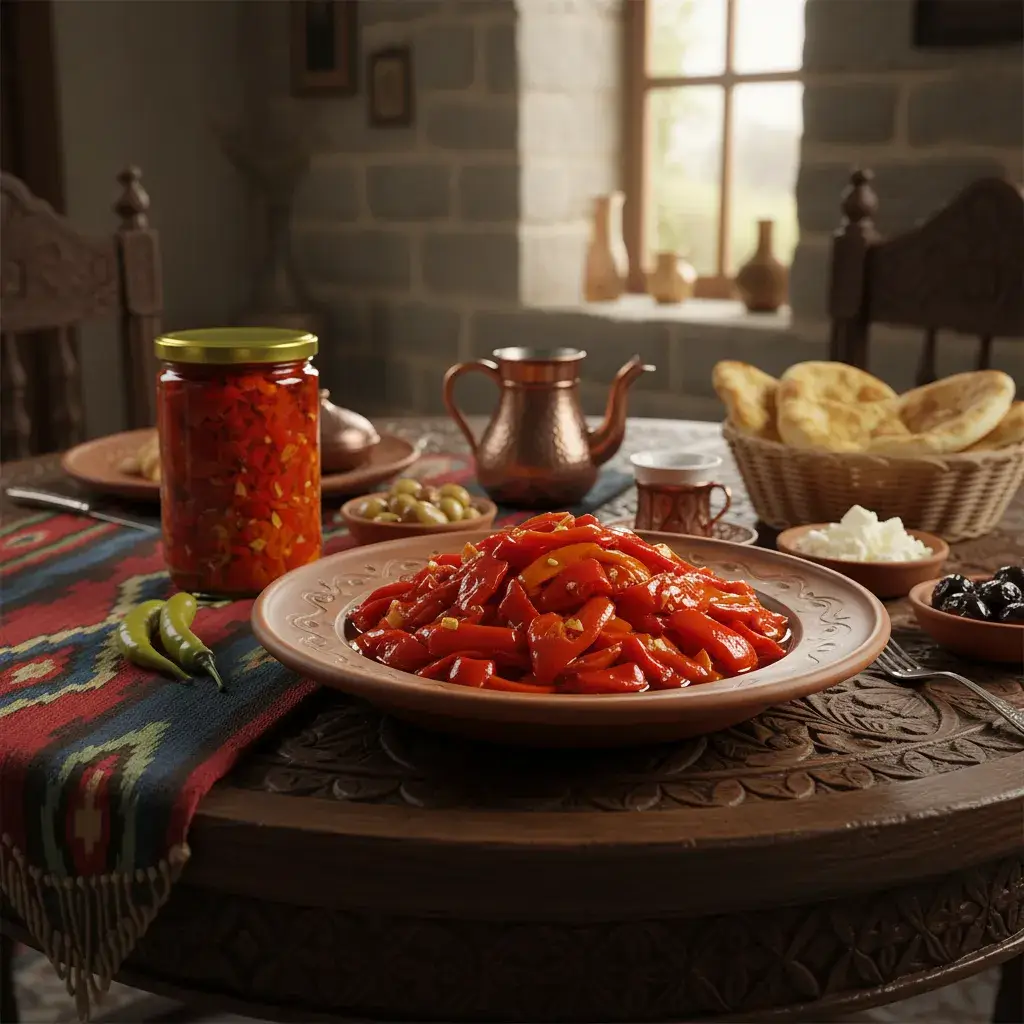 Hatay’ın verimli bahçelerinden özenle toplanan tatlı biberler, geleneksel yöntemlerle fırında közlenir ve lezzetiyle sofralarınızı şenlendirir. Biberler, zeytinyağı, sirke, nane ve sarımsakla harmanlandıktan sonra ocakta nazikçe kaynatılır ve tazeliğini koruyan cam kavanozlarda sunulur. Bu doğal süreç, biberlerin hem yoğun aromalı hem de sağlıklı kalmasını sağlar.